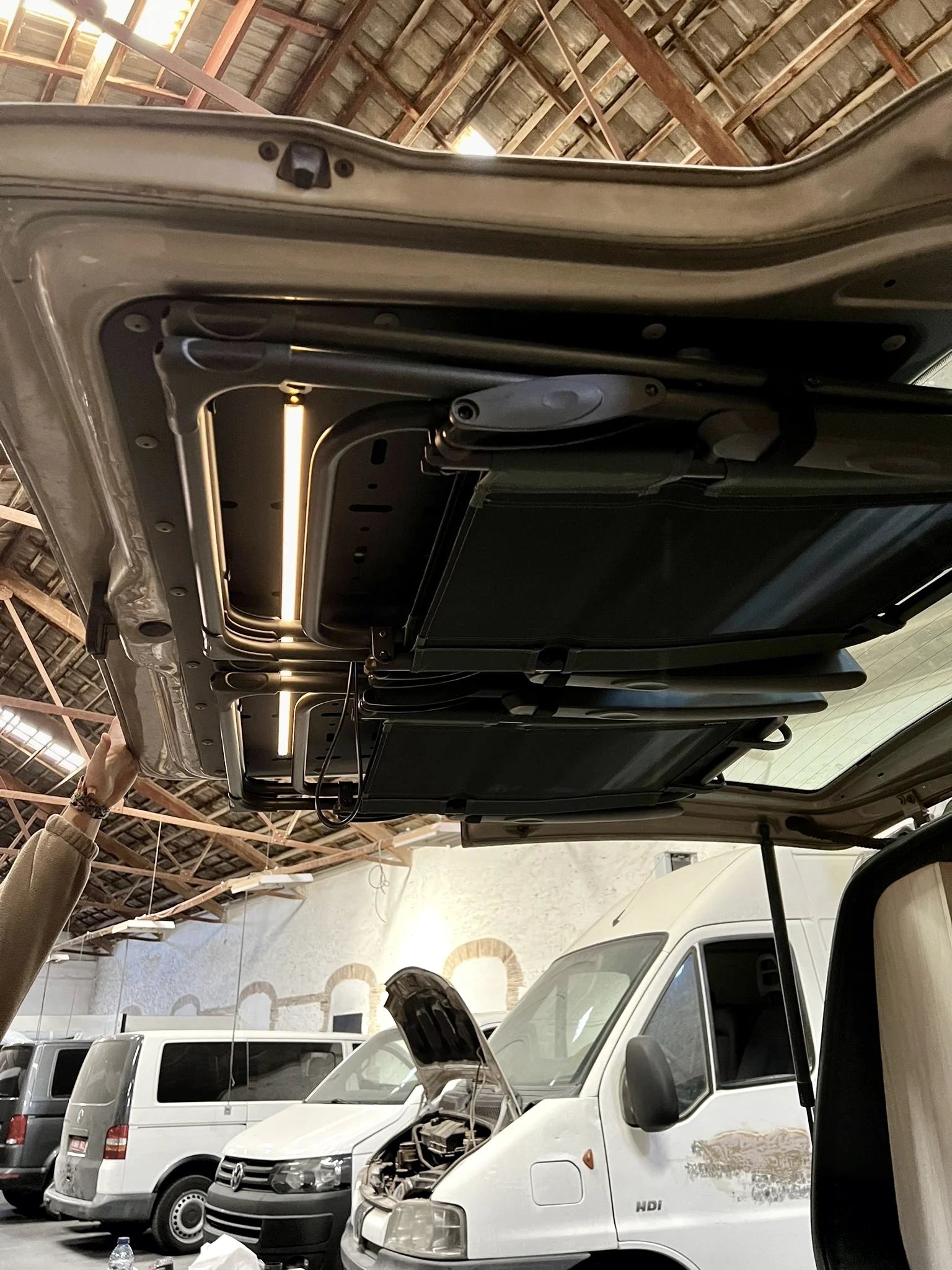 We recommend upgrading your gas struts. If your van originally came with a bike rack, it likely already has stronger struts. For setups with both a bike rack and the TrunkKarrier, we use a pair of 1200 NM gas struts.